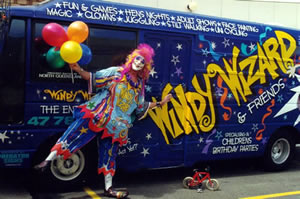 For over 20 years now, he has developed a reputation as the most reliable and versatile entertainer for nearly any type of function and for creating a successful night of humorous entertainment for all your guests. You’ll also find out that his business reputation, due to his easy going nature and professional standards, stands tall and is well respected in the entertainment industry. As you will discover, Windy Wizard has the ability to read the audience and ascertain the type of entertainment your guests most enjoy. Let me explain. You’ll immediately notice Windy has a weird, wacky, wild and witty style of outrageous humour. He incorporates this into all his wonderful skills, so you and your friends can expect to laugh at his creative clowning, goofy juggling and silly stilt-walking. Your guests will be stunned by his crazy uni-cycling and wicked trick bike riding. The audience will be overly intrigued by his bewildering balloon sculpting and simply amazed by baffling magic. You’ll then see everyone be totally captivated by his Magical Family Fun Stage Show. |
